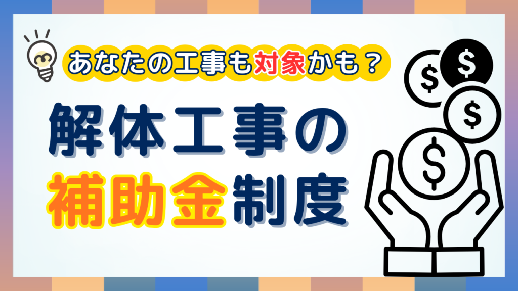 補助金は皆さんの解体費用の負担を大きく軽減してくれるため、お財布にとてもありがたい制度ですよね。