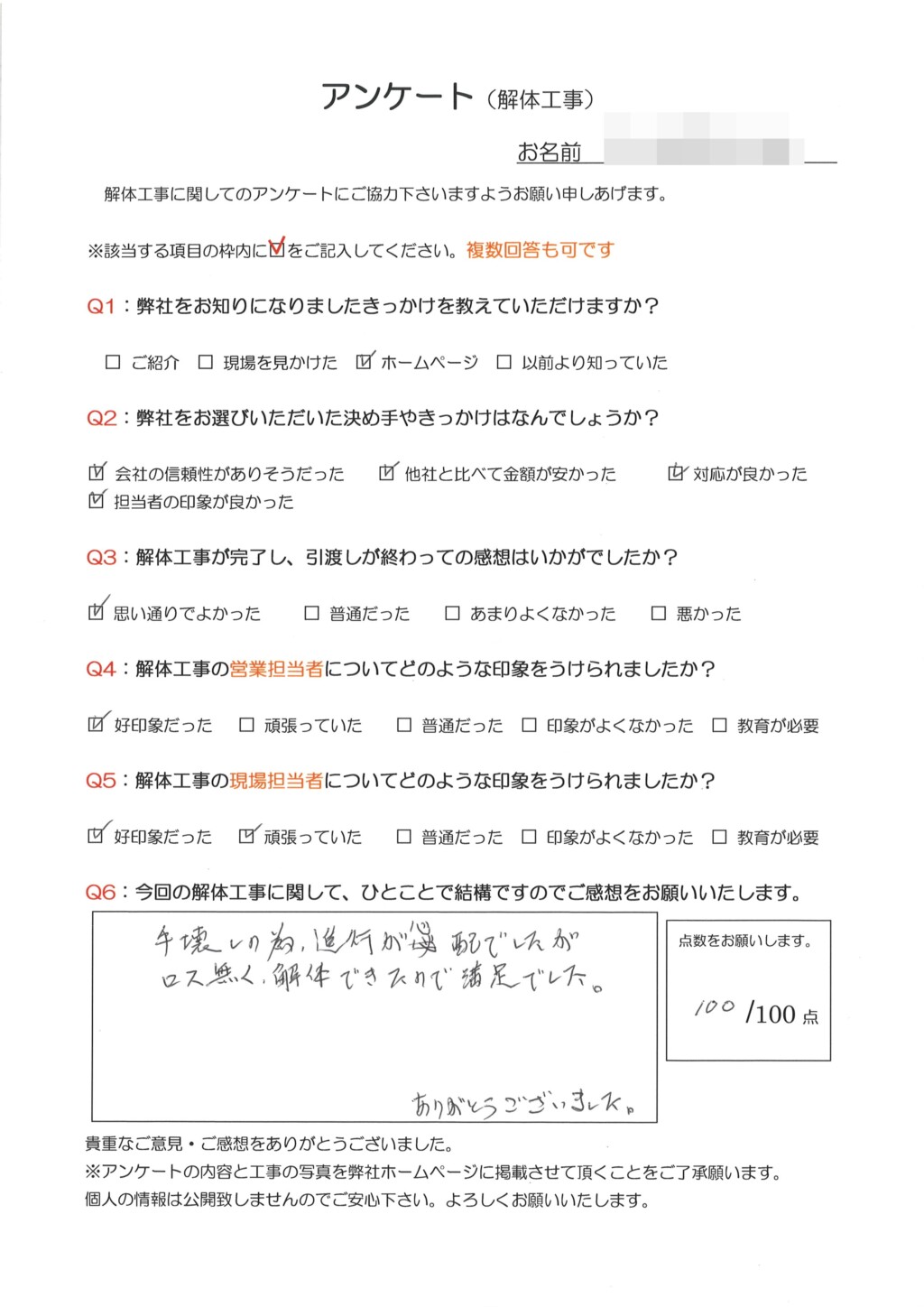 手壊しの為、進行が心配でしたがロス無く解体できたので満足でした。